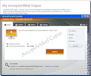 sekarang saya ingin share anti virus terbaik Microsoft Security Essentials adalah anti virus buatan microsoft yang mungkin bisa di andalkan kemampuannya,ternyata bukan hanya saya saja yang menggunakan Antivirus ini,ternyata banyak orang mengatakan/menggunakan Microsoft Security Essentials.hehehe
